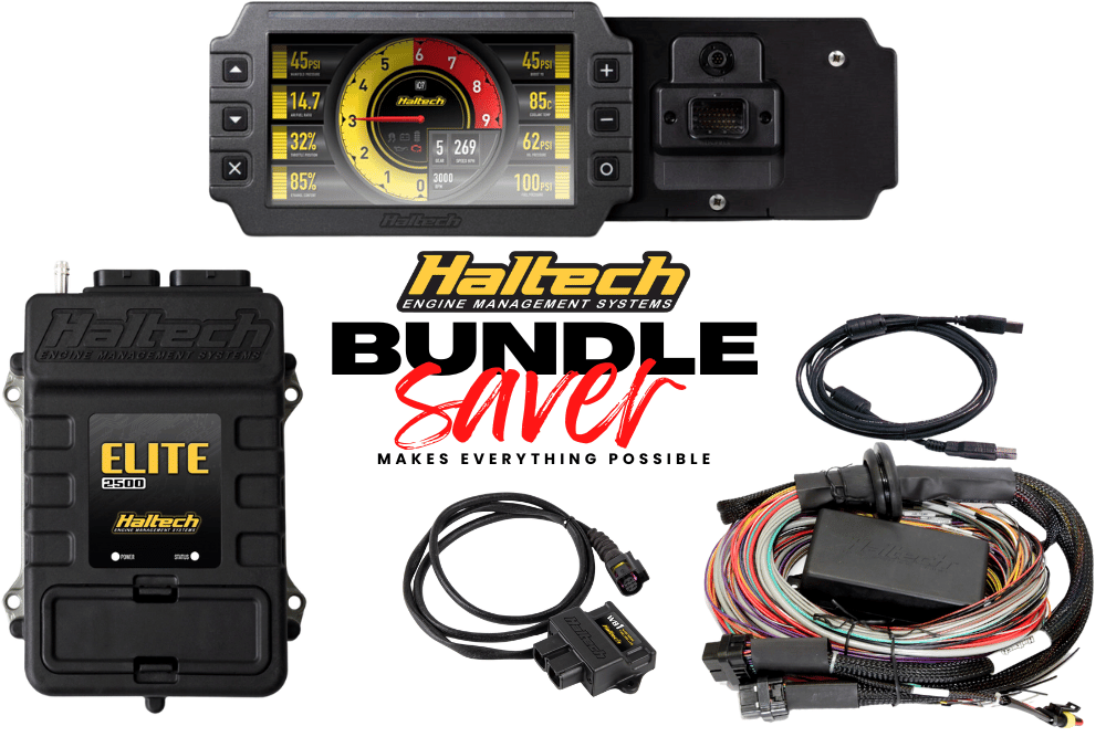 Haltech Bundle Saver makes everything possible. Save More with our Haltech Bundles. This bundle includes a Haltech Elite 2500 + Premium (2.5m) Universal Wire-in Harness Kit + Single Channel Can 02 Wideband Controller Kit + IC-7 Dash.