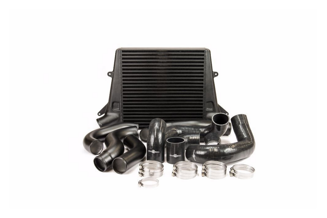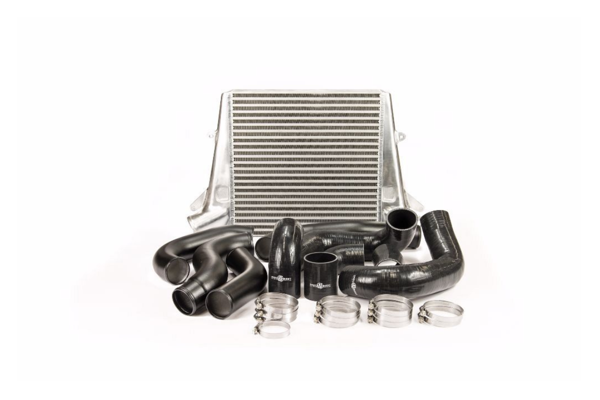 The Process West Stage 2 Front Mount Intercooler Kit for the Ford FG Falcon includes a 420 x 410 x90mm bar & plate intercooler core, with hi-flow polished aluminium end tanks. This allows for smooth flow and effective cooling of the charge air entering the engine. Along with mandrel bent aluminium piping this Front Mount Intercooler Kit offers superior cooling performance for the Ford FG Falcon. Included in the kit is all the necessary silicone joiners and appropriate stainless steel hose clamps.